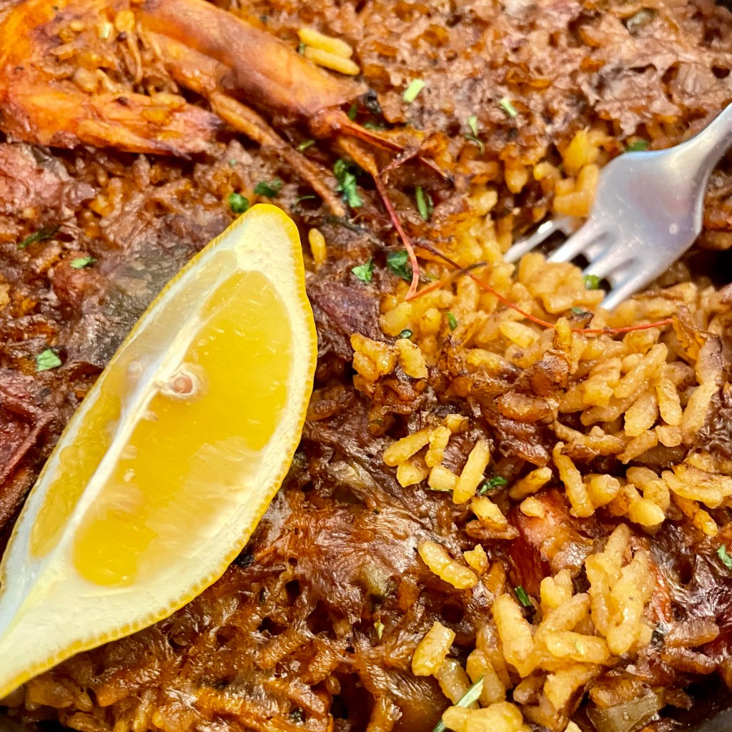 Talking about lunch, paella is a dish originally from Valencia, but can still be enjoyed everywhere in Spain during menú del día at La Finca de Susana, close to Plaza Santa Ana.