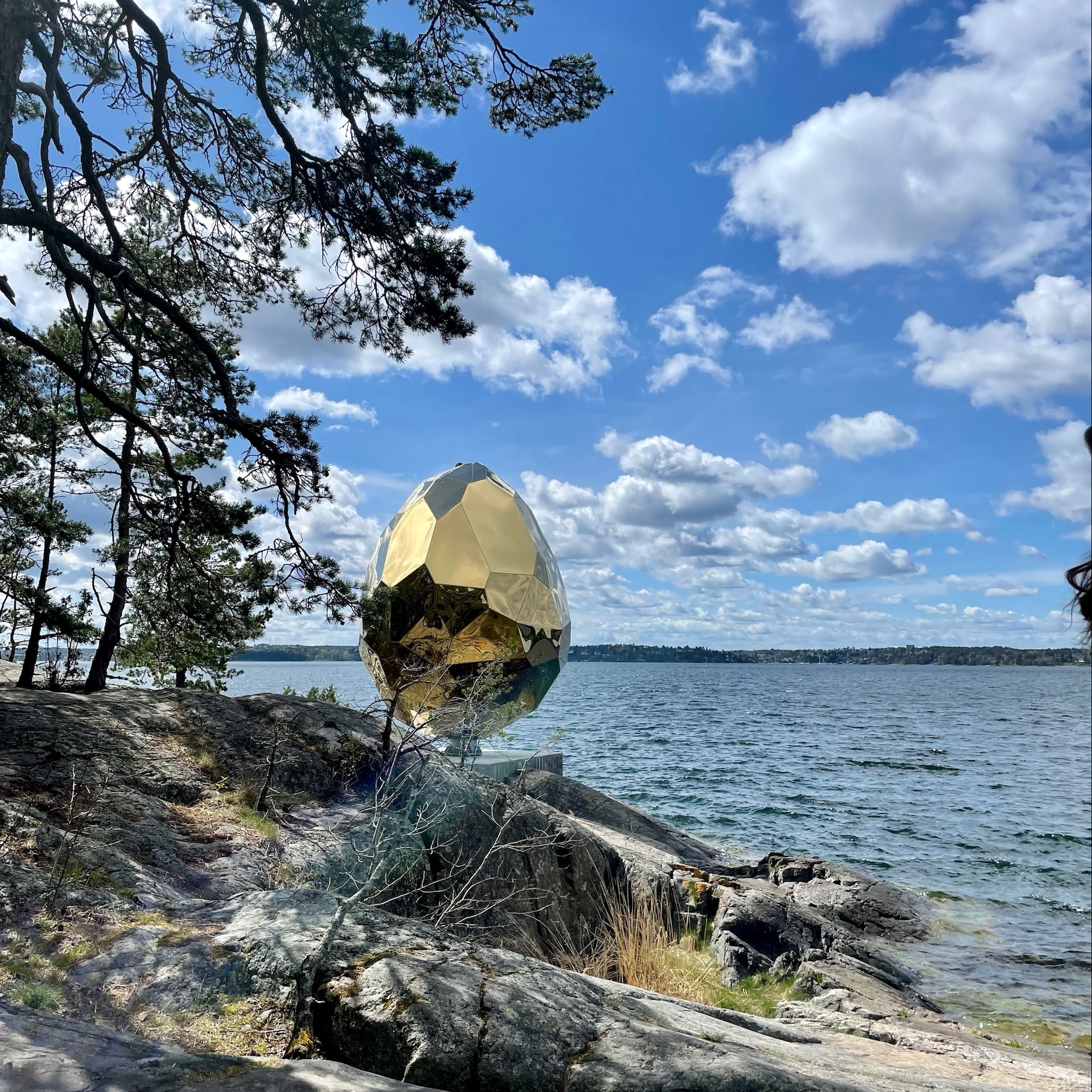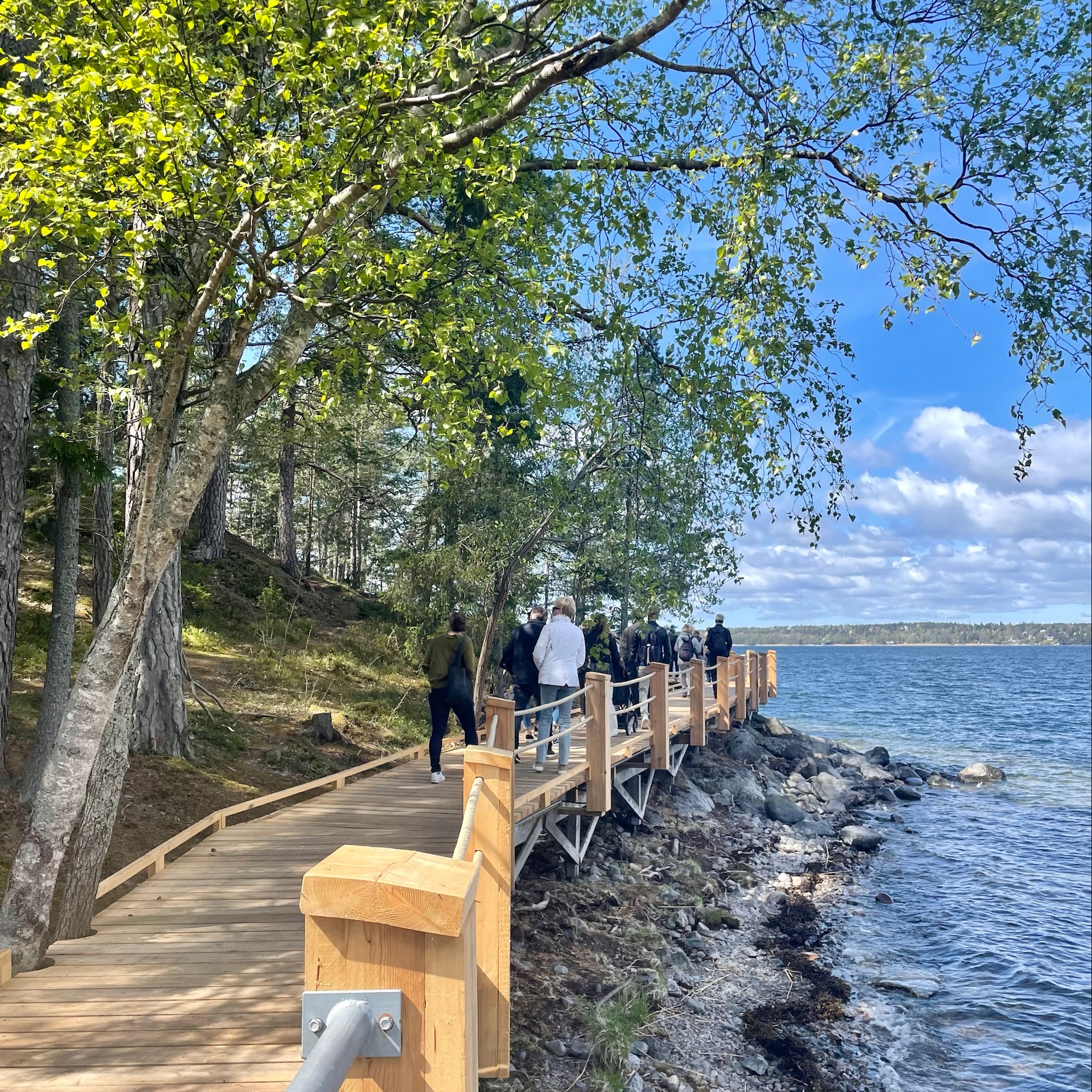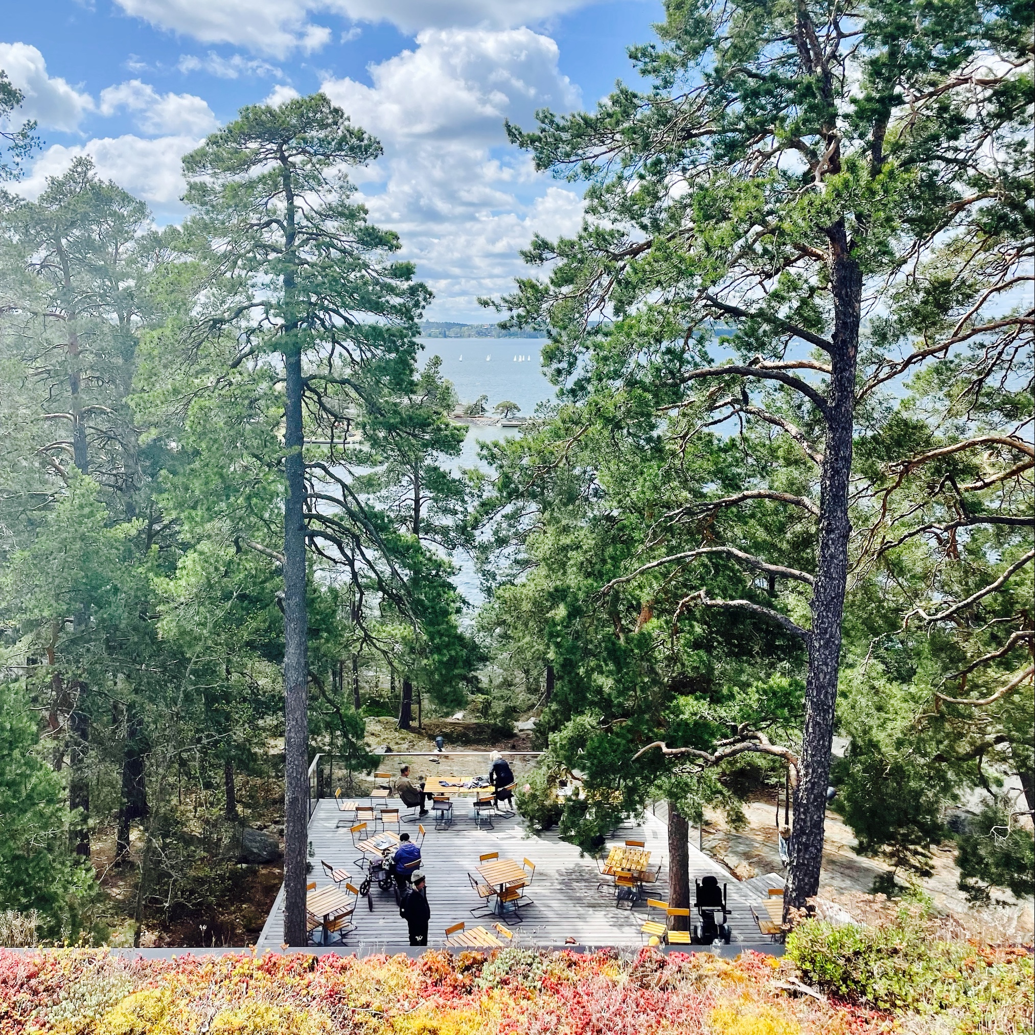 Time to explore for a couple of hours the permanent outdoor exhibition – Sculpture in nature – in the walking paths in the woods and along the coast, and enjoy the fresh air. And stop for a fika bread at Bådan Café & Pâtisserie outdoor terrace, among the pine trees, before taking the boat M/S Gustafsberg VII back to Stockholm harbor.
