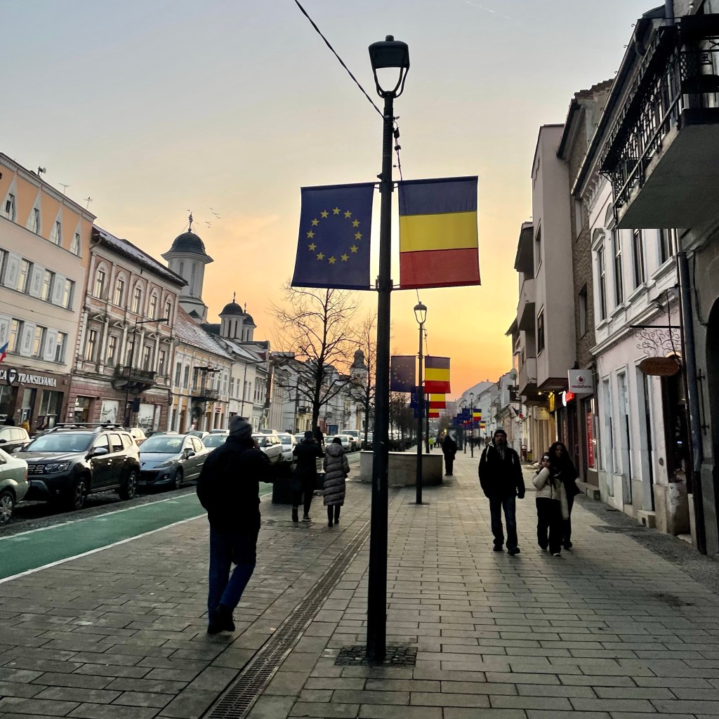 Strolling on the main boulevard called Heroes (Eroilor) I could not help to gladly notice the Romanian and EU flags. And in the same time, to admire the buildings, some colorful, others in Art Deco or Baroque style, and finally, many with Art Nouveau decorations.