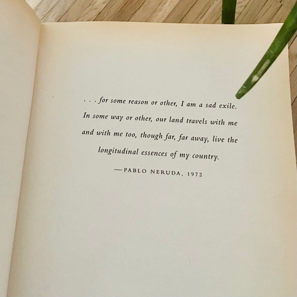 This book has helped me understand that I am not obligated to make a decision: I can have one foot in Chile and another here, that’s why we have planes. (…) For the moment California is my home and Chile is the land of my nostalgia. My heart isn’t divided, it has merely grown larger.