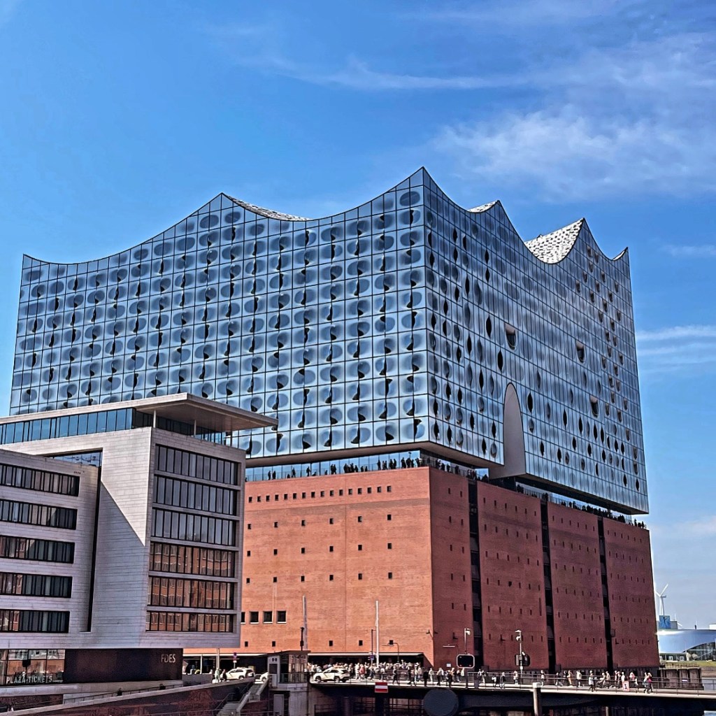 Plus a favorite activity on water – to go with a ferry from Elbphilharmonie – named after the Elbe River. Fondly nicknamed Elbphi by locals. This building is more than a concert hall. In my eyes is a cultural landmark, a symbol of the city and a work of Art due to its architectural splendor. The curvy design fits so well in the district of Hamburg, the water and the sky reflecting perfectly in the blue glass.
