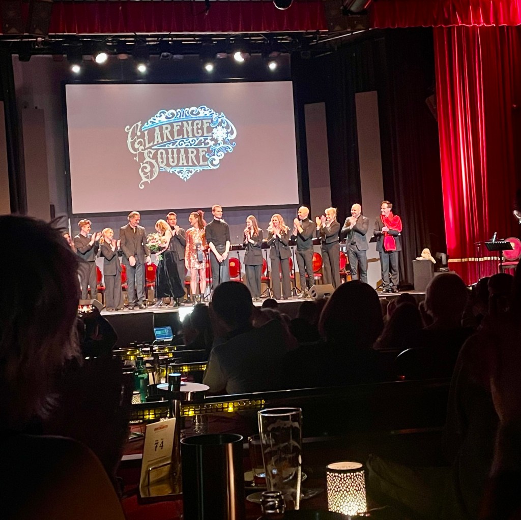 Unfortunately the first Wintergarden that opened in 1887 was destroyed during the Second World War. The relocated theater is decorated with dark red velvet and large chandeliers. You can enjoy the show with dinner and drinks at your table, and the conversation takes place by candlelight. In the play we saw, Clarence Square (musical), set in turn-of-the-century Toronto, the reading was done by Gedeon Burkhard, which is a famous local actor, as I was told after the play.